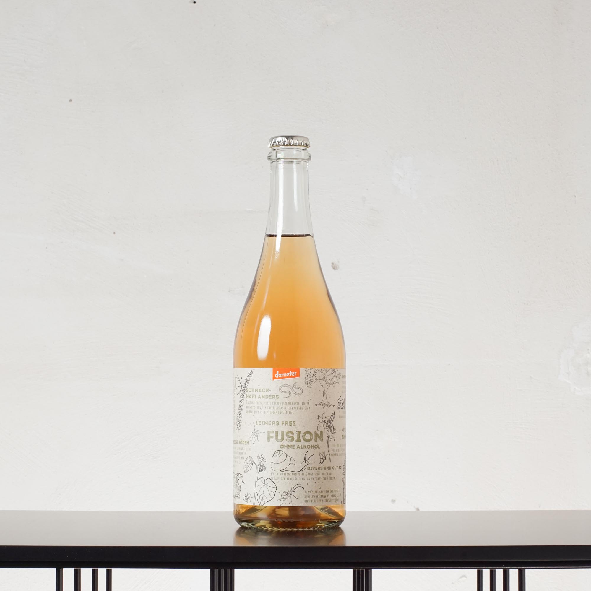 Der Fusion Free Weiß vom Weingut Jürgen Leiner in Ilbesheim (Pfalz) ist ein alkoholfreier, biologisch erzeugter Traubensecco. Hergestellt aus frischem Bio-Traubensaft, verfeinert mit einem Auszug aus Wiesenkräutern und leicht perlender Kohlensäure. Die Zutaten stammen aus biologischer Landwirtschaft, und das Getränk ist vegan zertifiziert.